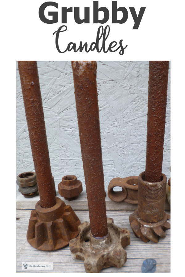 I've got a hoard of old gears, cogs and other rusty metal bits. They make perfect candle holders! Sometimes the hole is just a tiny bit small, so I shaved off the bottom of the candle all the way around to make it fit.
