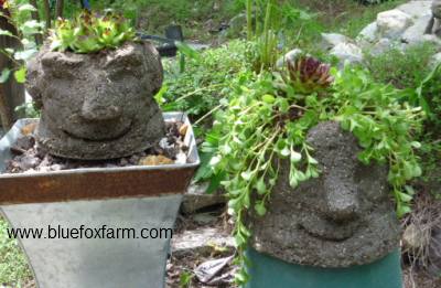 Once your hypertufa grot is fully cured, plant it with Sedum to drape over the sides like hair, and a big Sempervivum for a hat, and you’ve got a really amusing little planter to display in your garden.