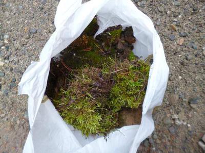 I collect lots of moss at this time of year, because it 'transplants' so readily and gets established in a nursery bed or flat over the winter, and from there, into terrariums, moss gardens and topiary. Smaller pieces that fall off the main chunks will take a couple of years to grow, but they will be ready to use in crafts after that.
